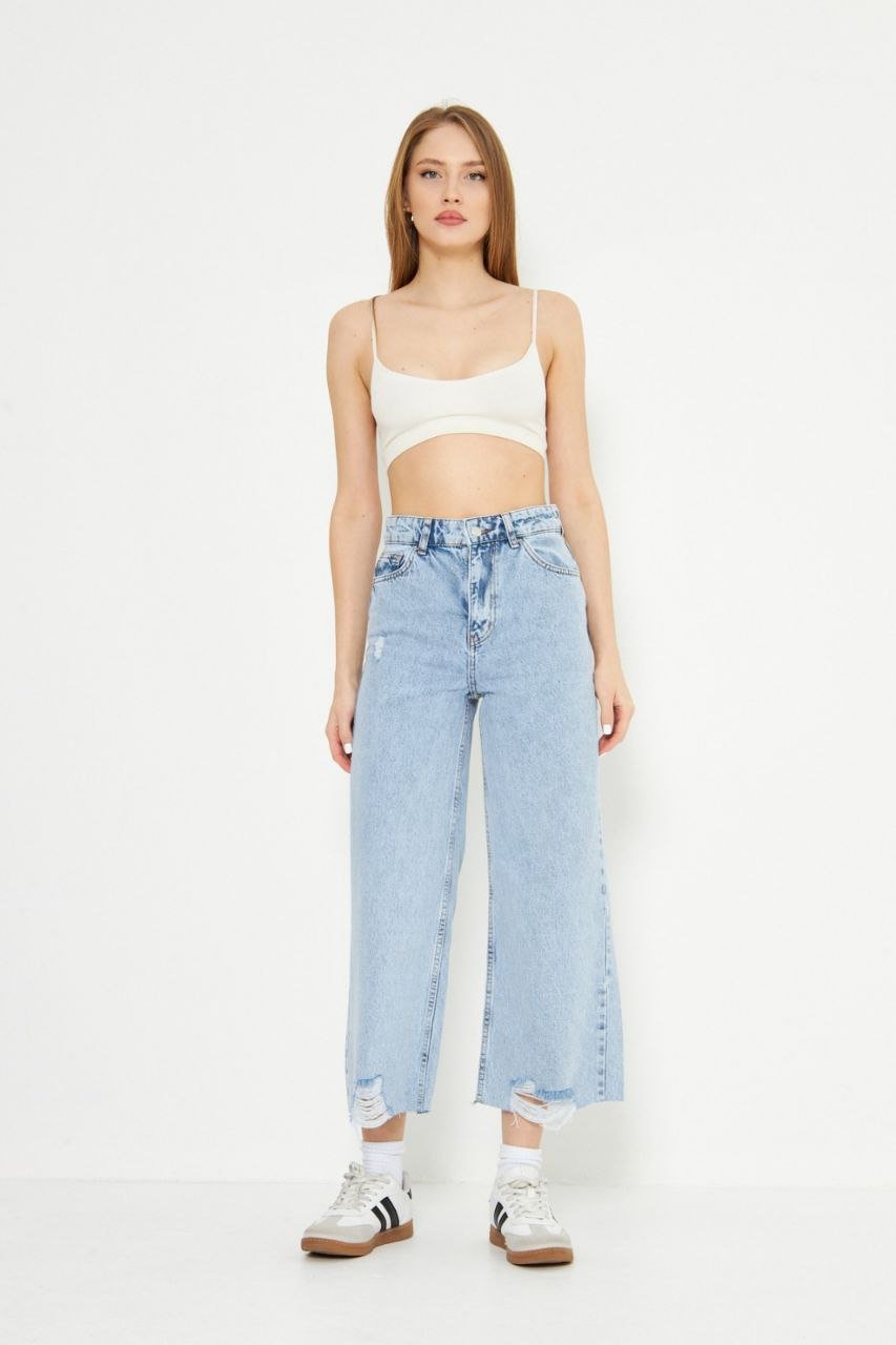 Dark Blue Wide Leg Culotte Jeans
